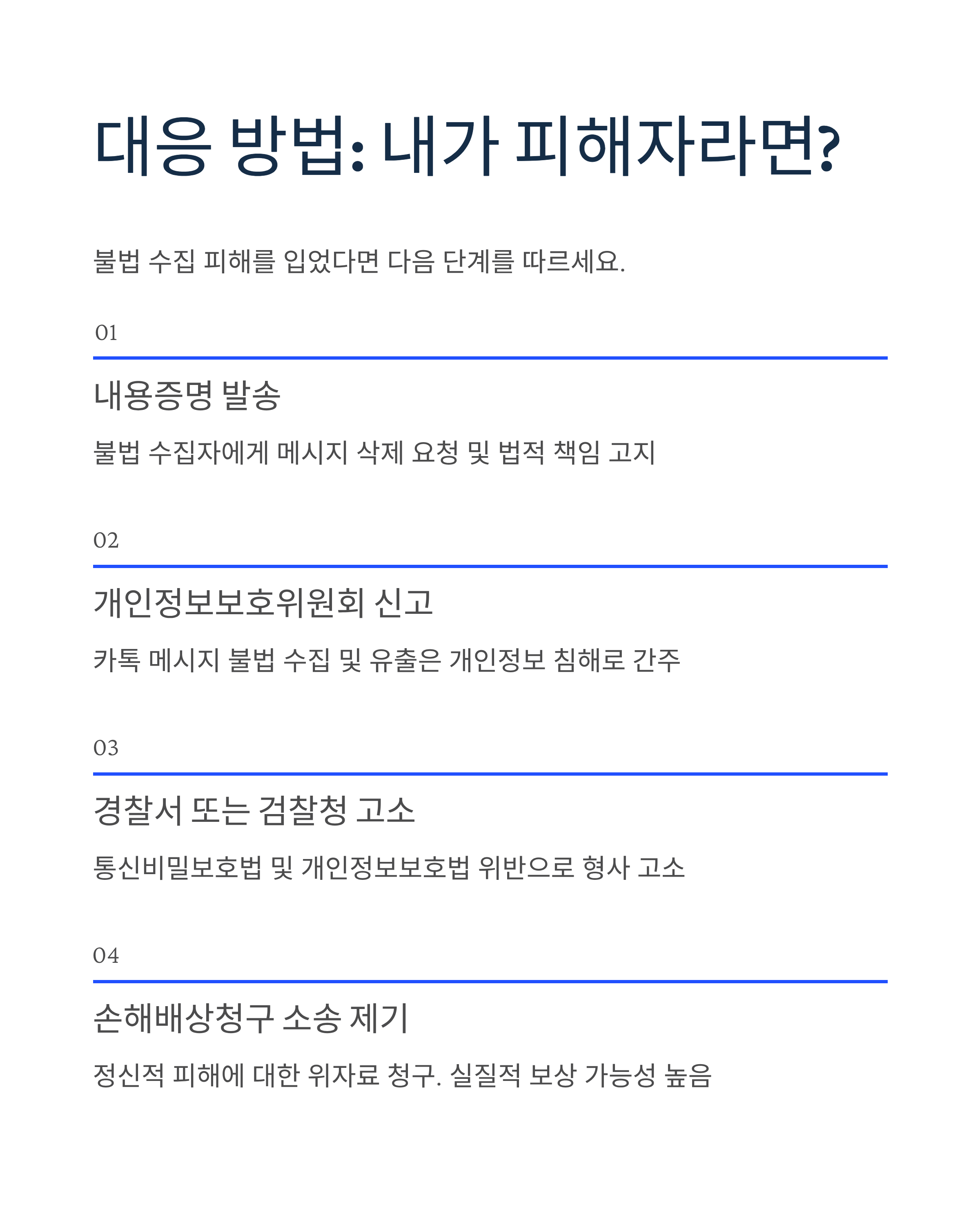 - 불법 수집자에게 해당 메시지 삭제 요청 및 법적 책임 고지.