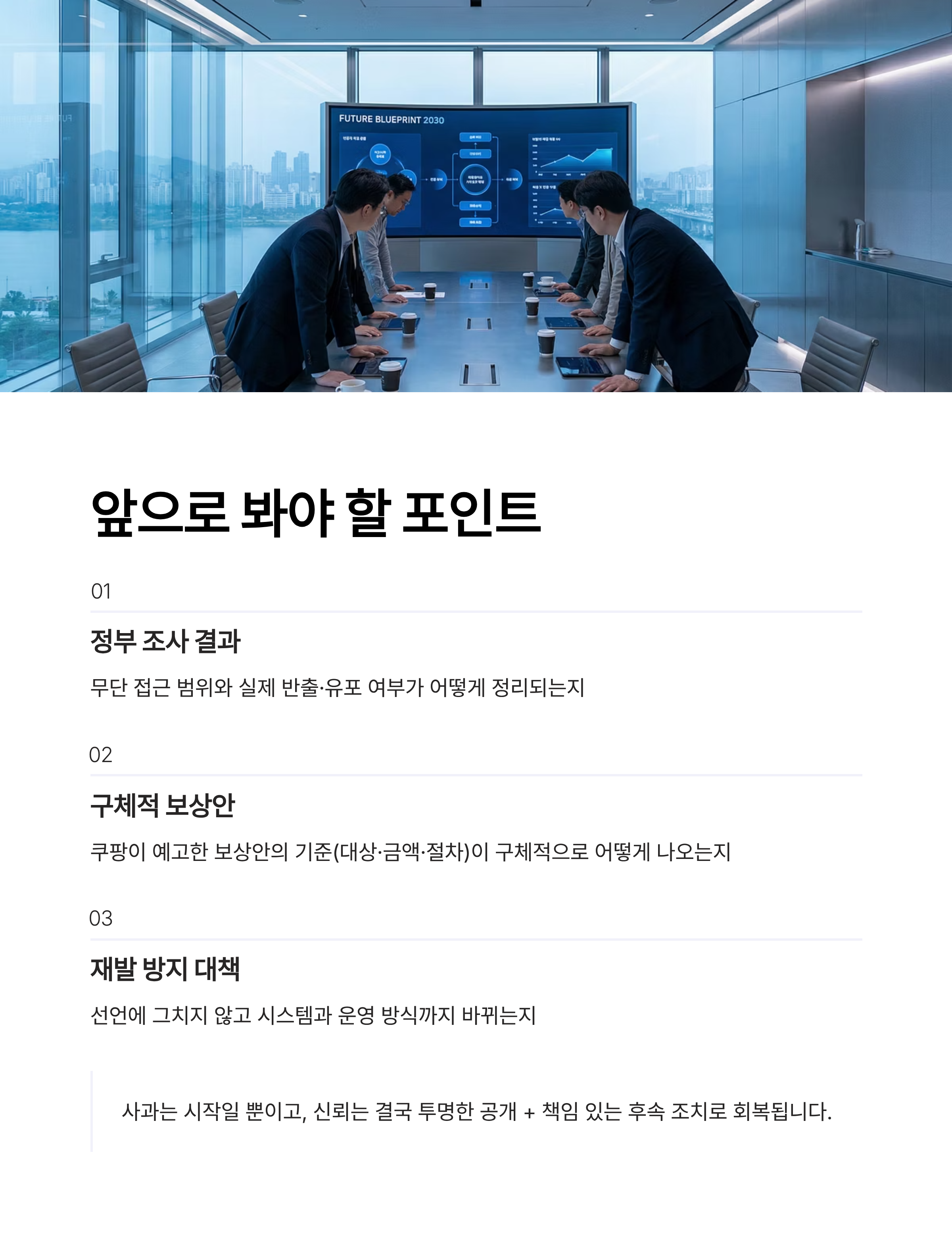 사과는 시작일 뿐이고, 신뢰는 결국 투명한 공개 + 책임 있는 후속 조치로 회복되는 거니까요.