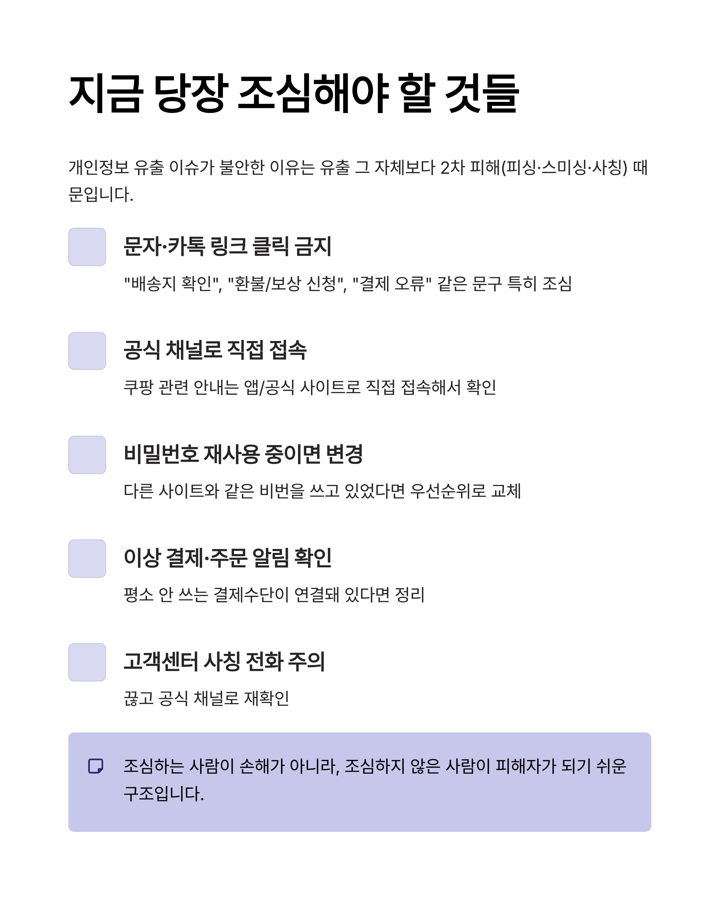 이용자가 지금 당장 조심해야 할 것들(현실 체크리스트)