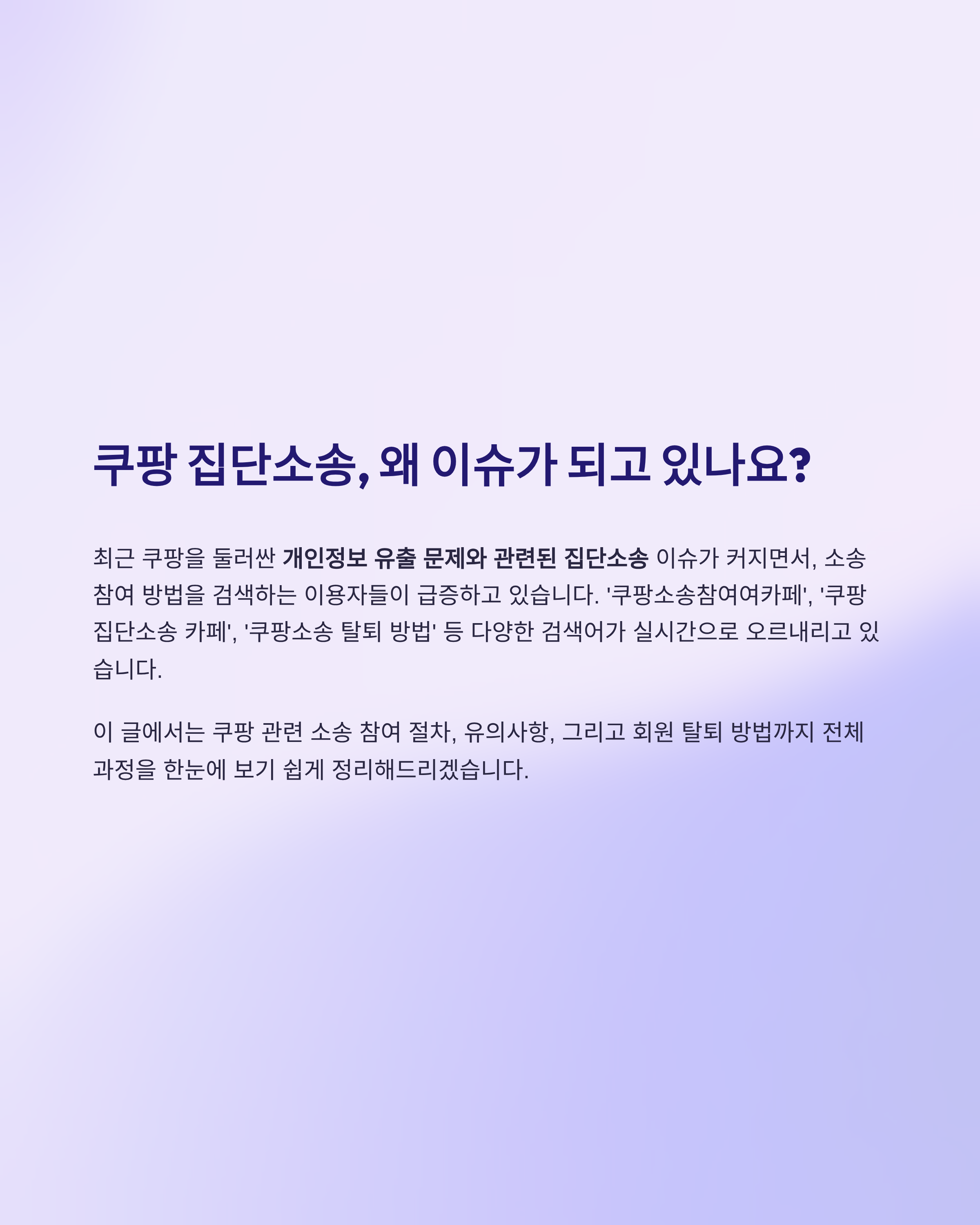 소송 참여는 보통 개인정보 유출, 소비자 피해, 집단 약관 위반 등 일정 조건을 만족할 때 가능합니다. 이번 쿠팡 소송 역시 개인정보 유출로 인한 소비자 권리 침해를 문제 삼고 있는 사례입니다.