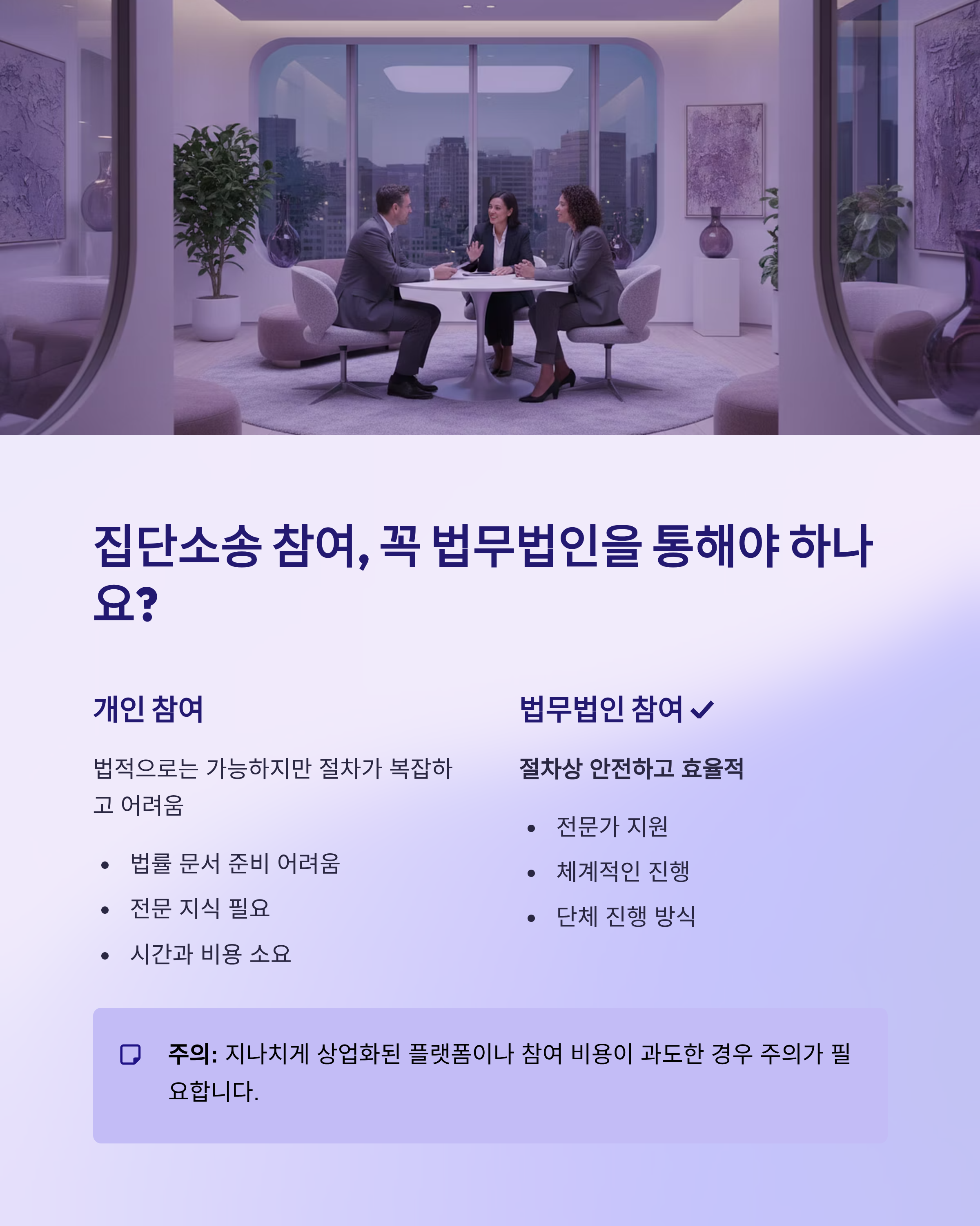 집단소송 참여, 꼭 법무법인을 통해야 하나요?