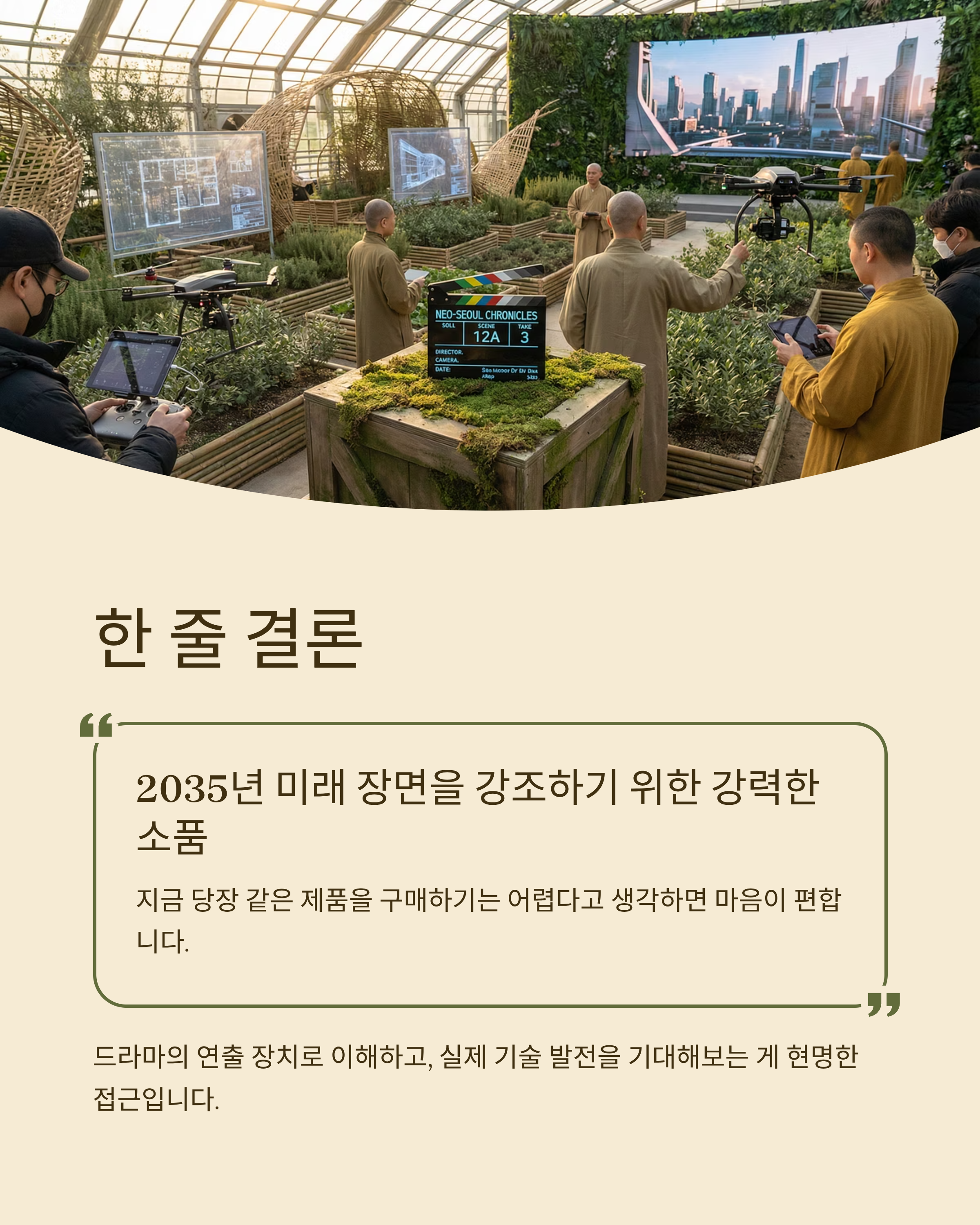 미래 장면을 “설명”하지 않아도 바로 느끼게 하려면, 한 방에 분위기를 바꾸는 소품이 필요하잖아요.