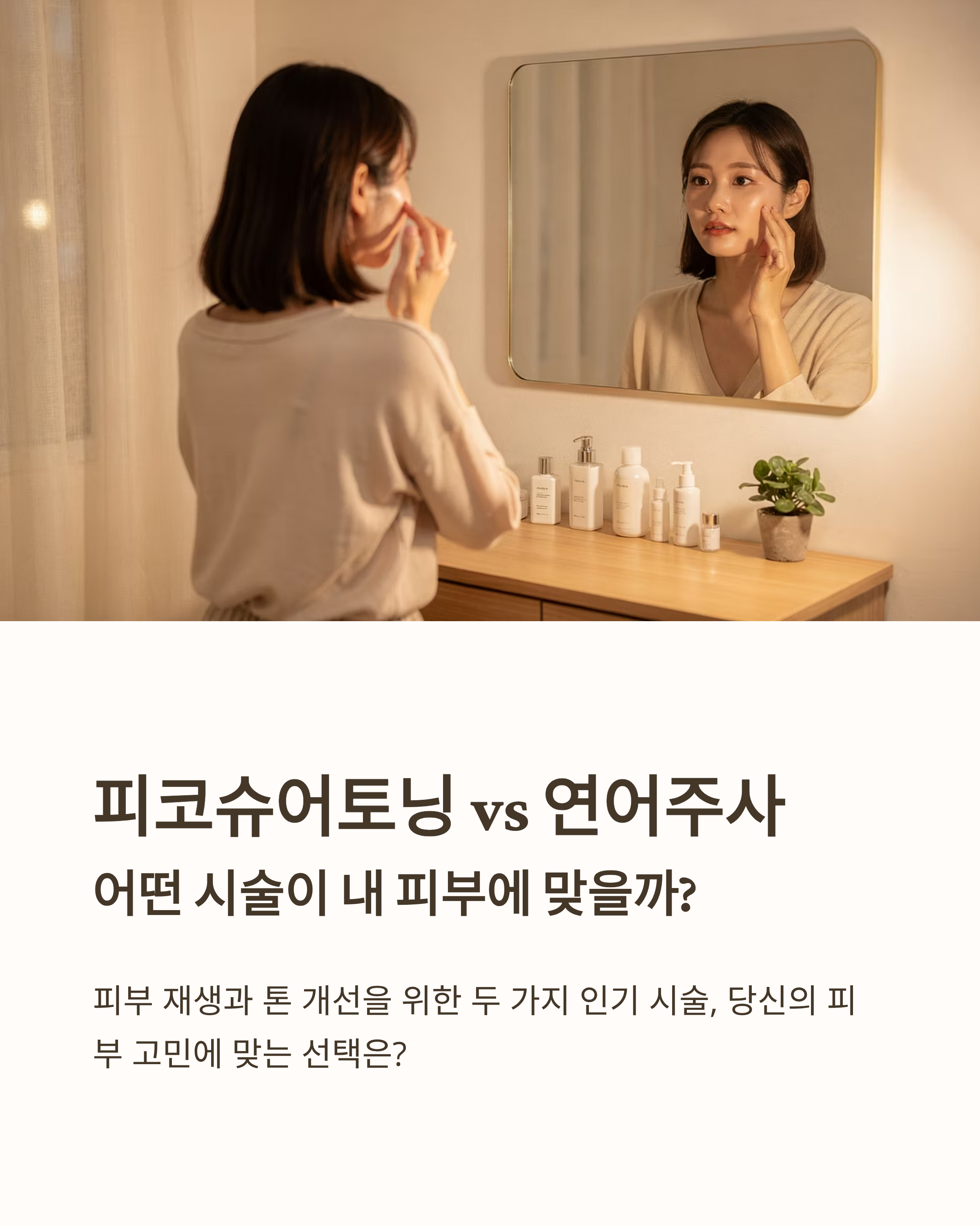 피부과 시술을 고민할 때, 가장 많이 비교되는 두 가지가 바로 피코슈어토닝과 연어주사입니다.