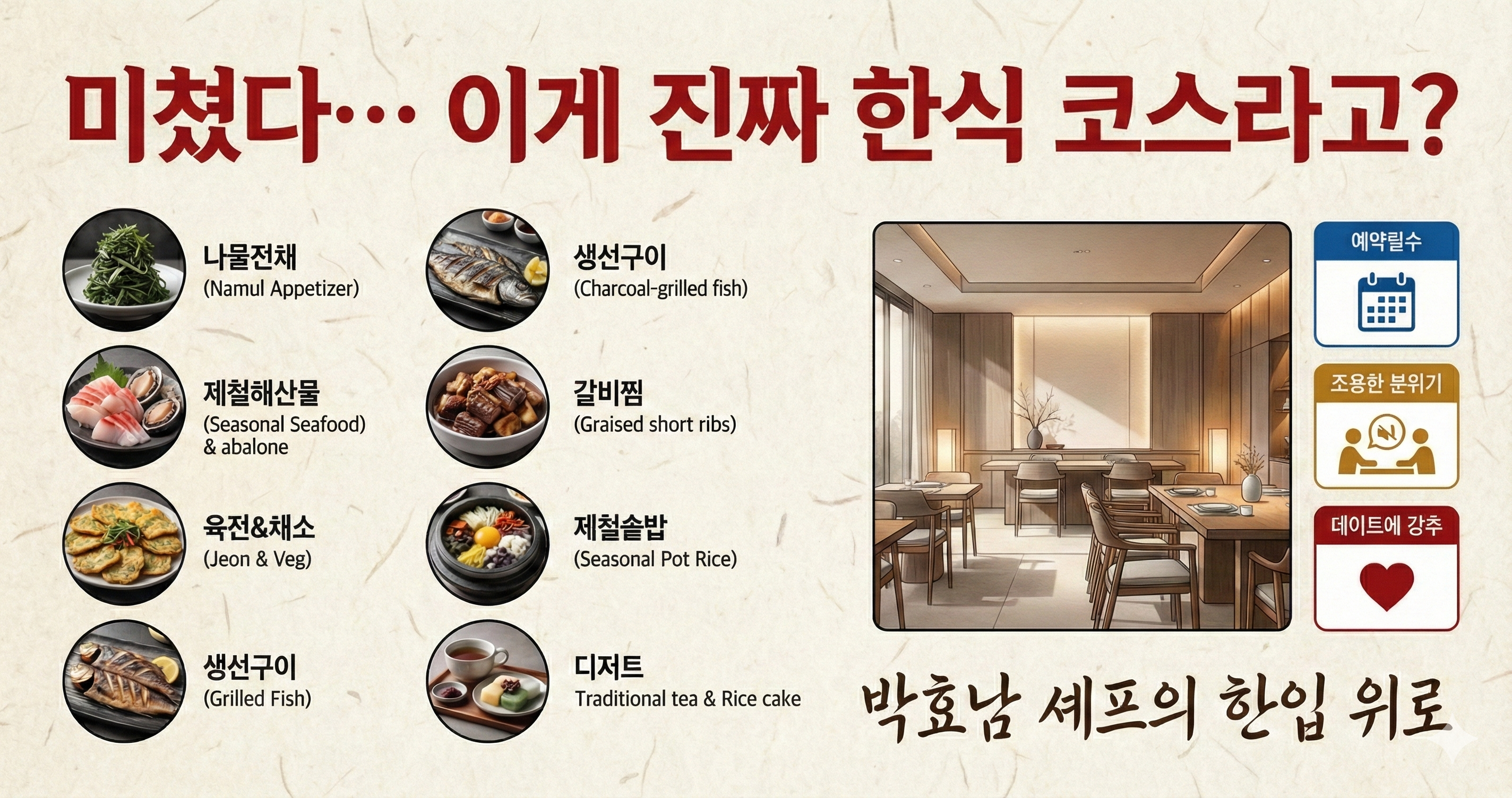 박효남 셰프의 명동 한식 다이닝 직접 방문 후기! 흑백요리사의 정갈한 한식 코스요리, 메뉴 구성부터 예약 팁까지 한눈에 정리해드립니다.