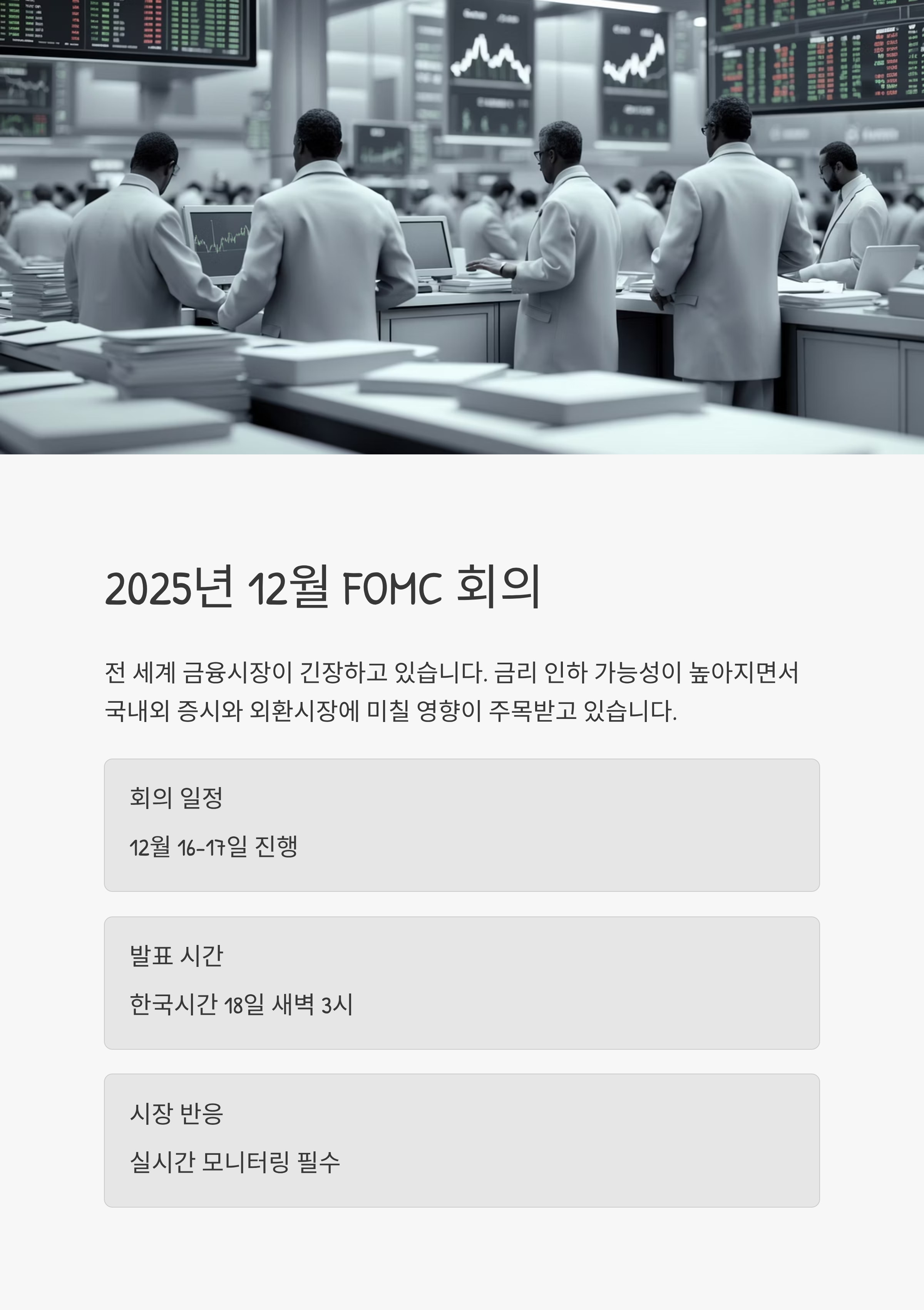 2025년 12월 예정된 미국 연방공개시장위원회(FOMC)의 회의 일정이 다가오면서 전 세계 금융시장이 다시 긴장하고 있습니다.