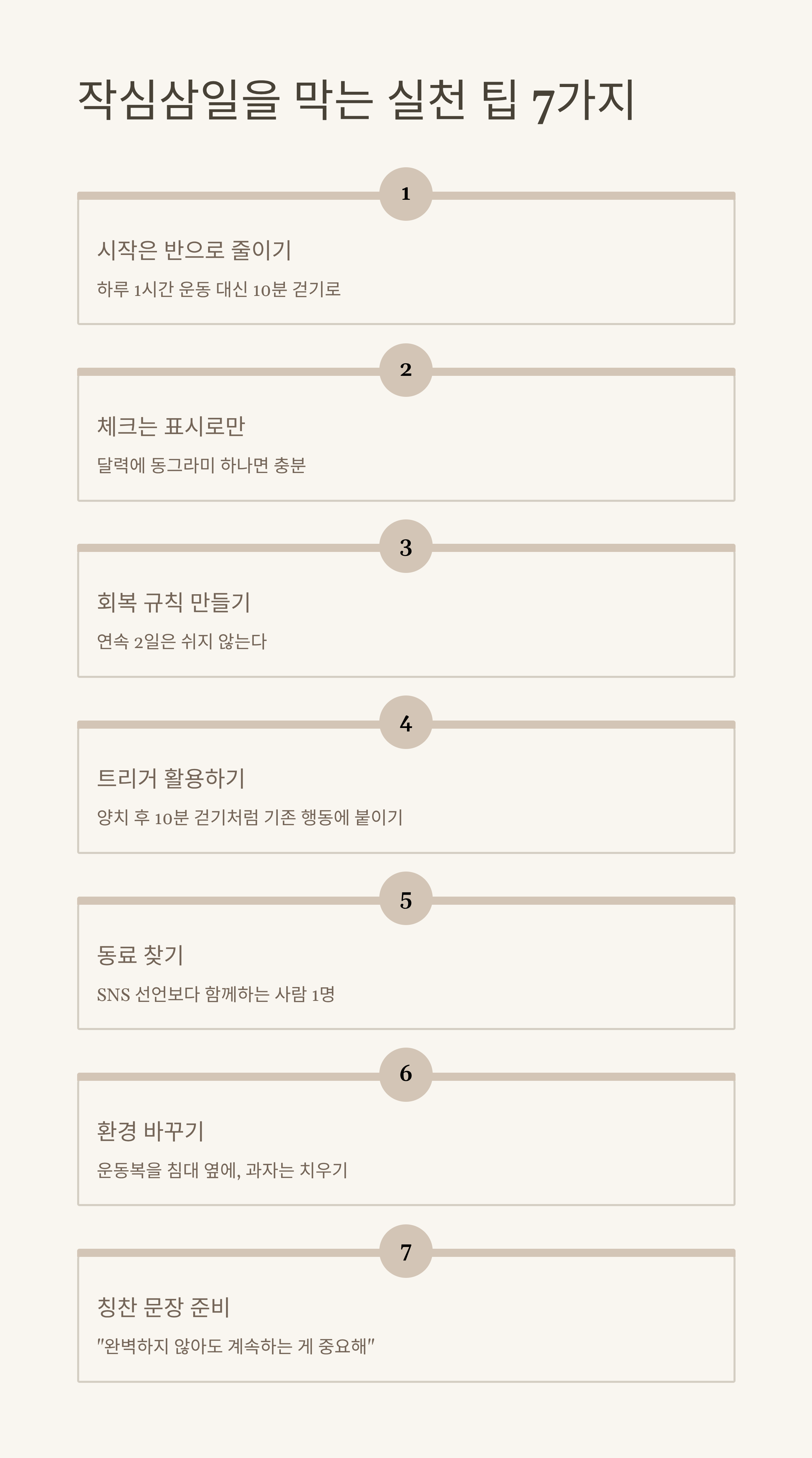 5) 실천 팁 7가지: 작심삼일을 막는 방법