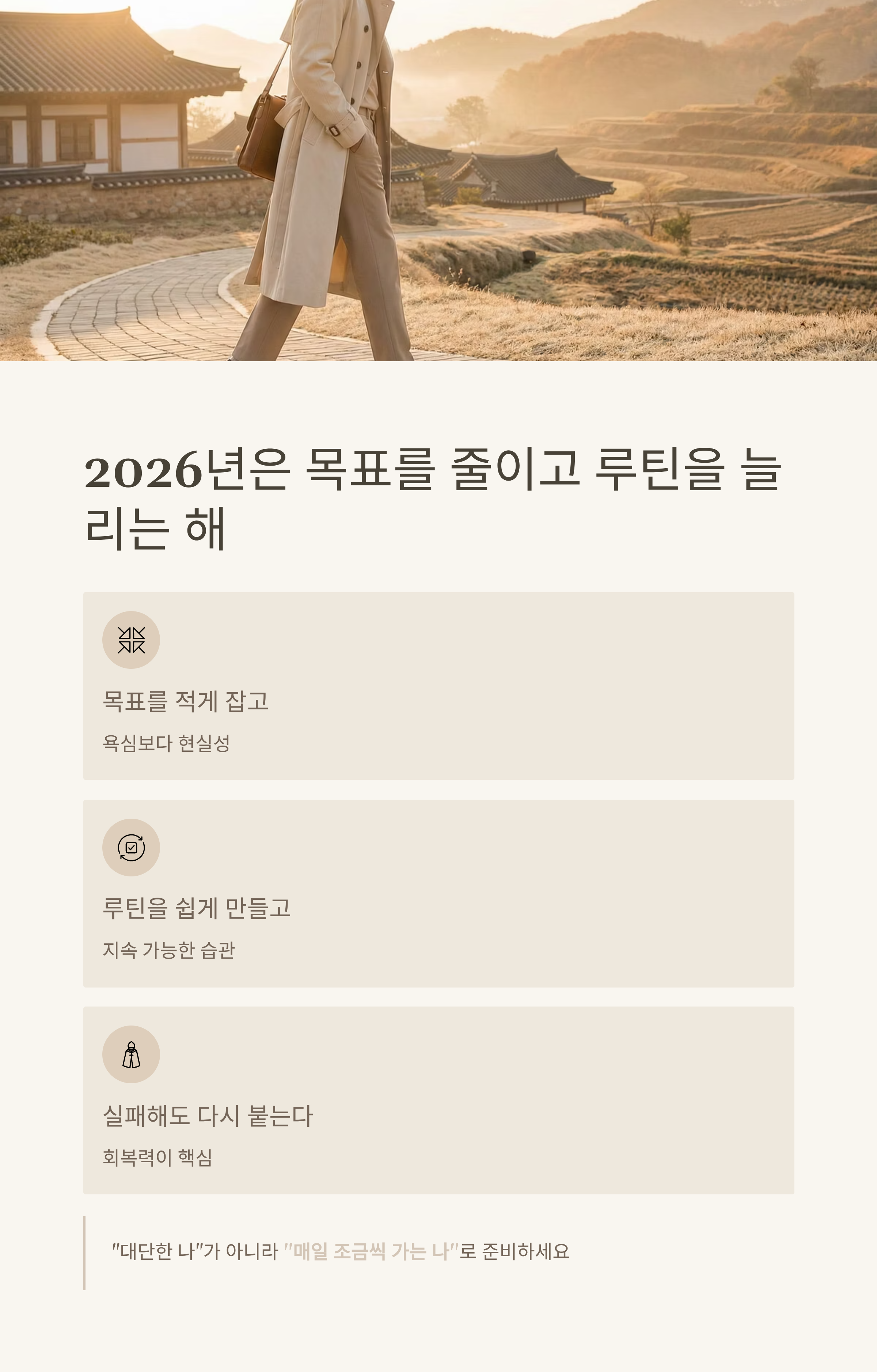 7) 마지막으로, 2026년은 “목표를 줄이고, 루틴을 늘리는 해”