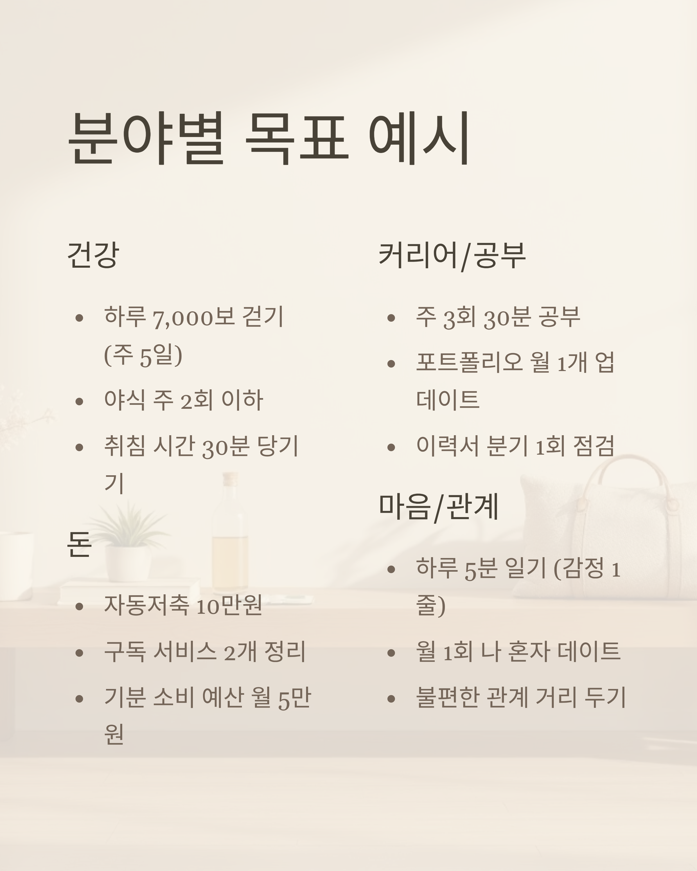 6) 분야별 목표 예시(바로 가져다 쓸 수 있게)