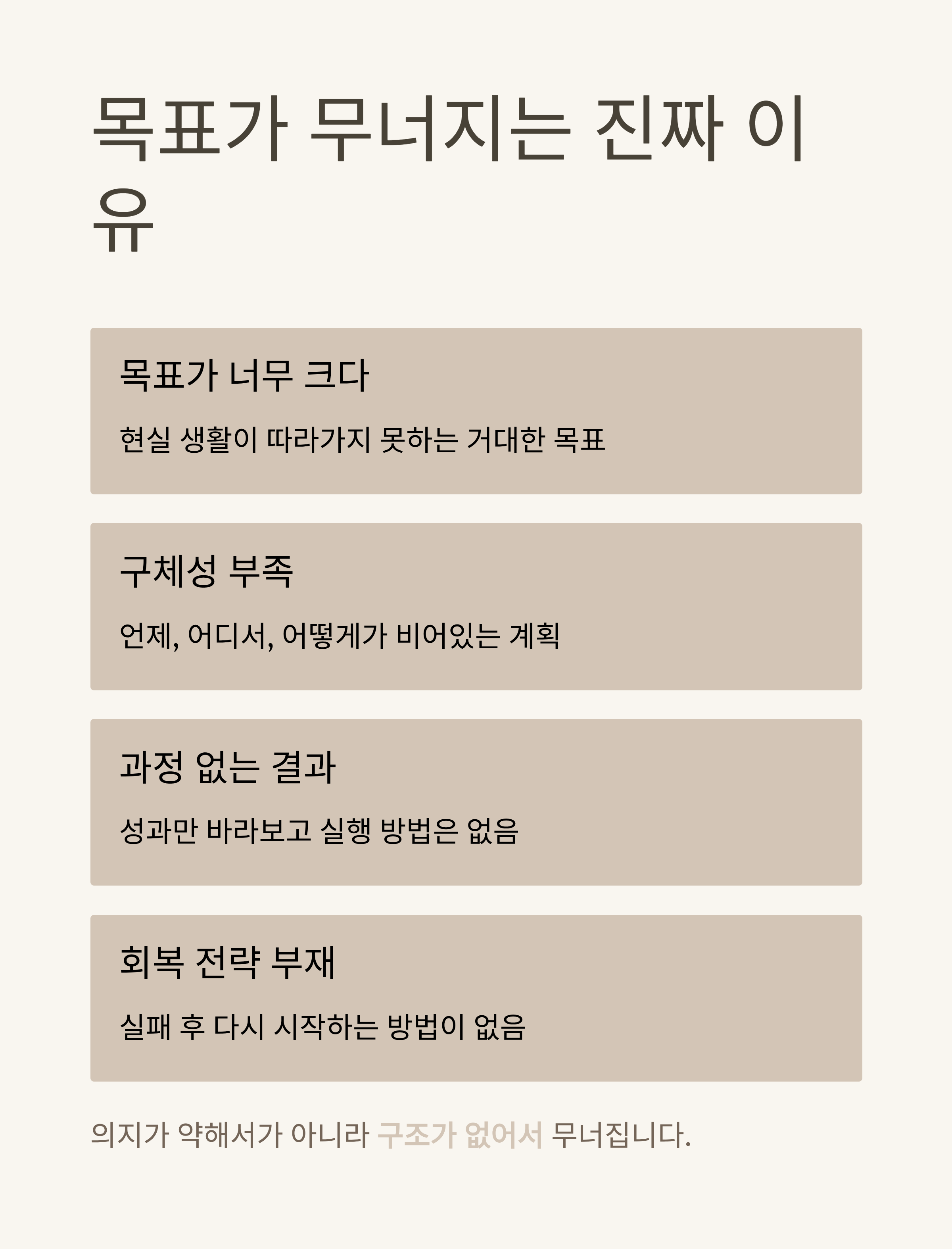 우리가 목표를 못 지키는 건 의지가 약해서가 아니라, 대부분 이런 이유 때문이에요.