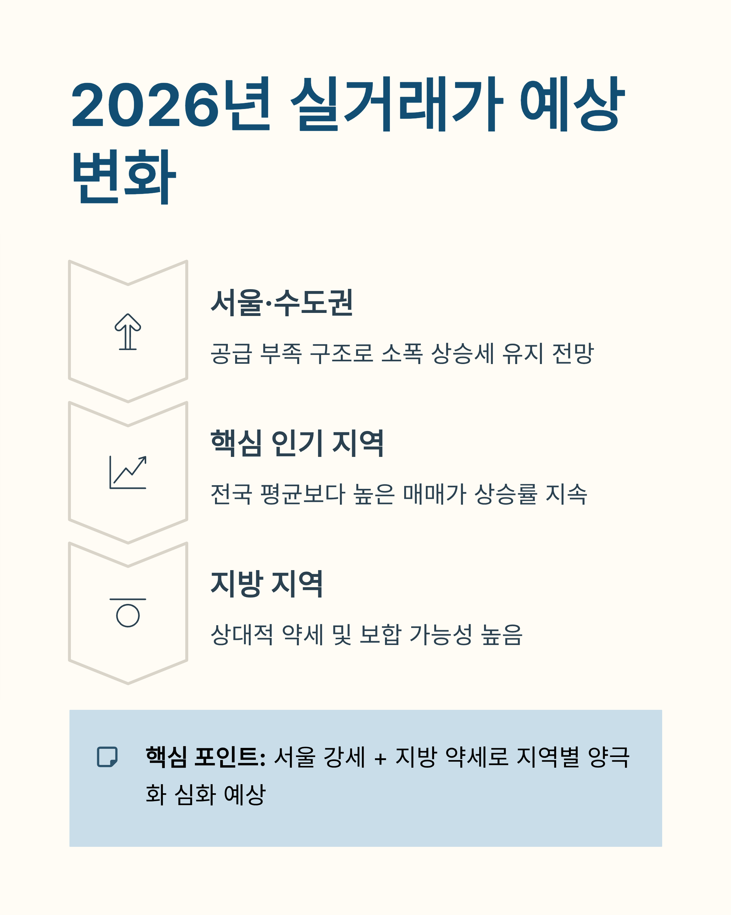 📌 핵심: 서울 강세 + 지방 약세로 지역별 양극화가 심화될 전망입니다.