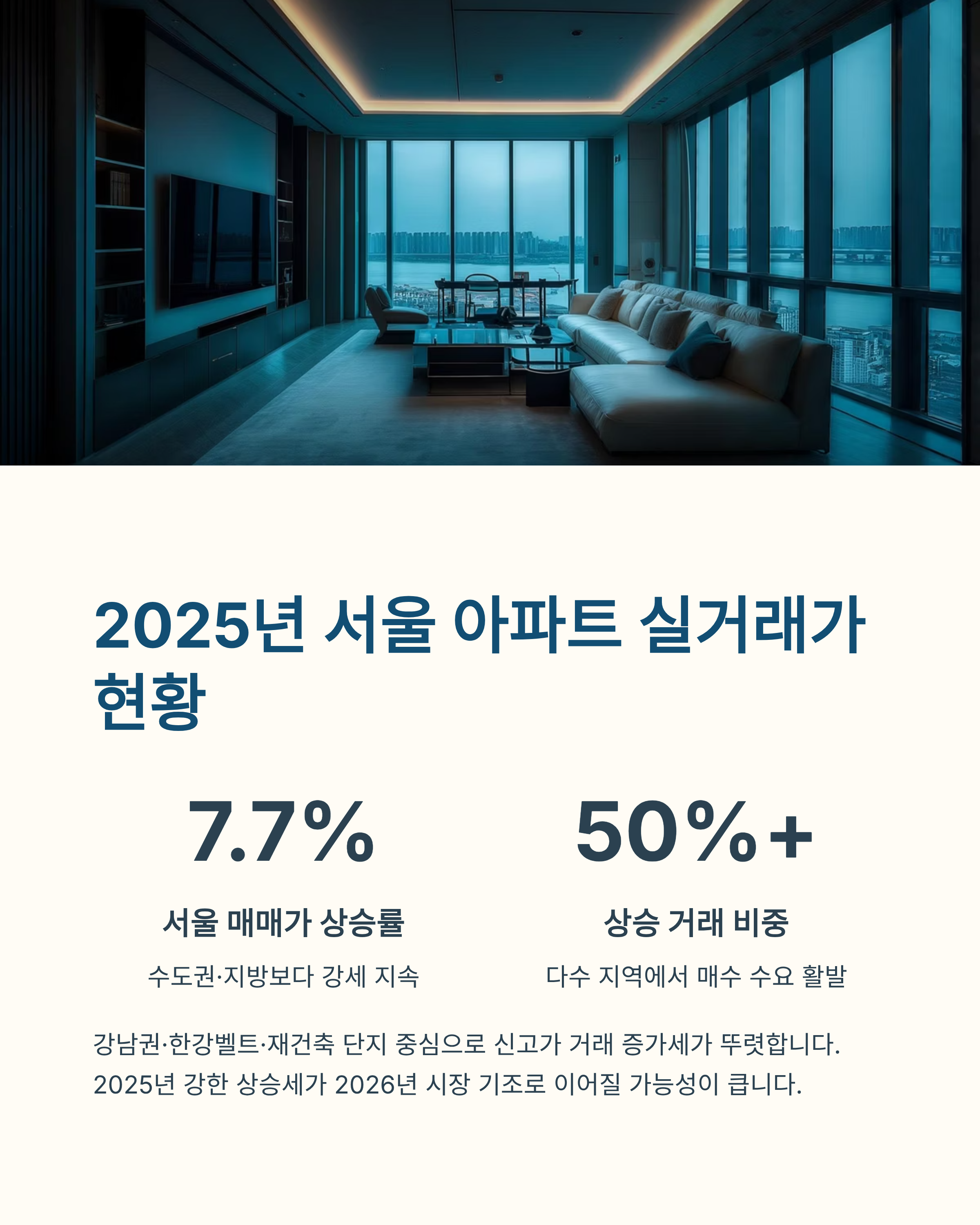 📌 요약: 2025년 서울 아파트 실거래가가 강하게 상승하며 2026년 시장 기조로 이어질 가능성이 크다.