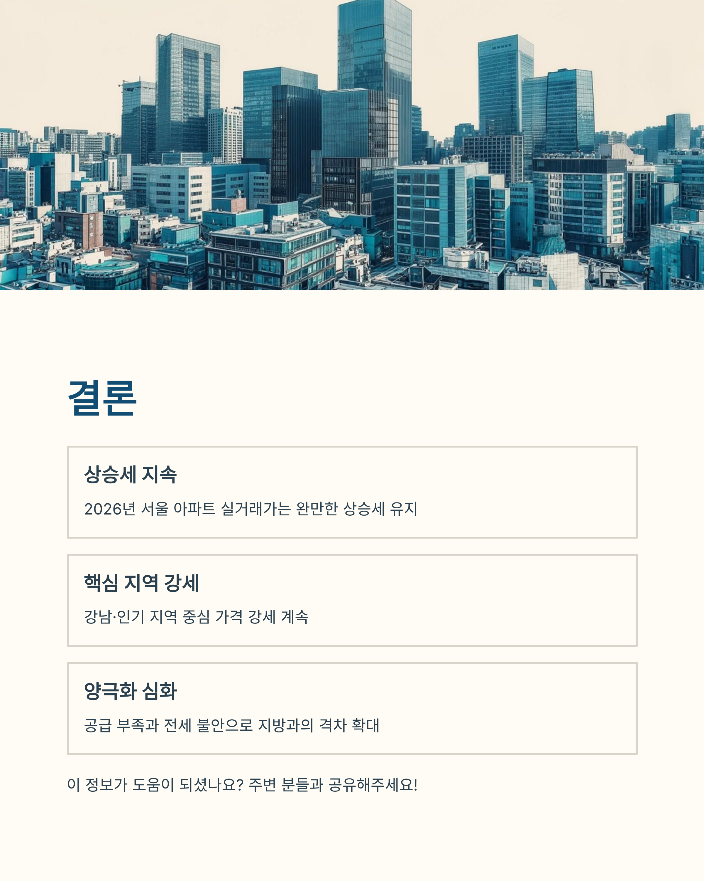 ✅ 2026년 서울 아파트 실거래가는 여전히 상승세 중심, 다만 상승폭은 완만하게 이어질 가능성이 큽니다.