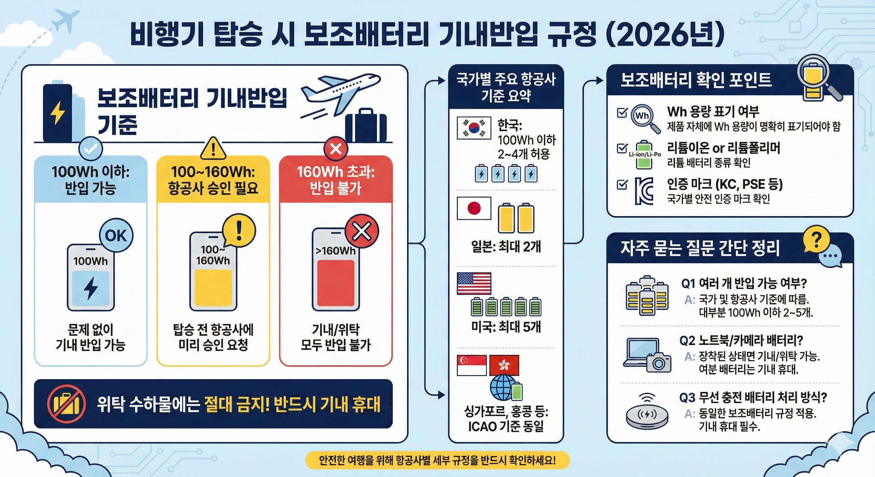 ✈️ 국가별 보조배터리 기내 반입 규정 (2026년 기준)