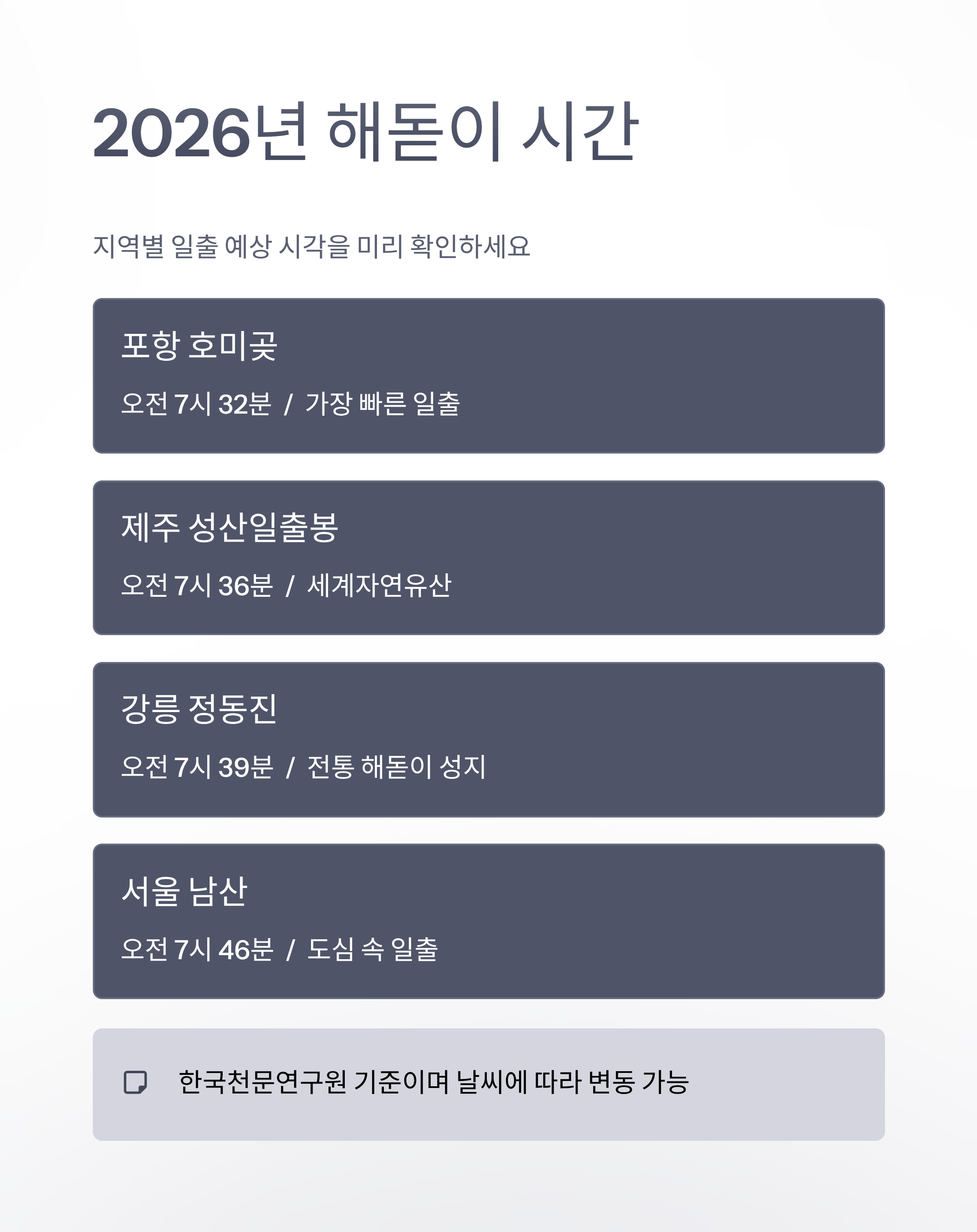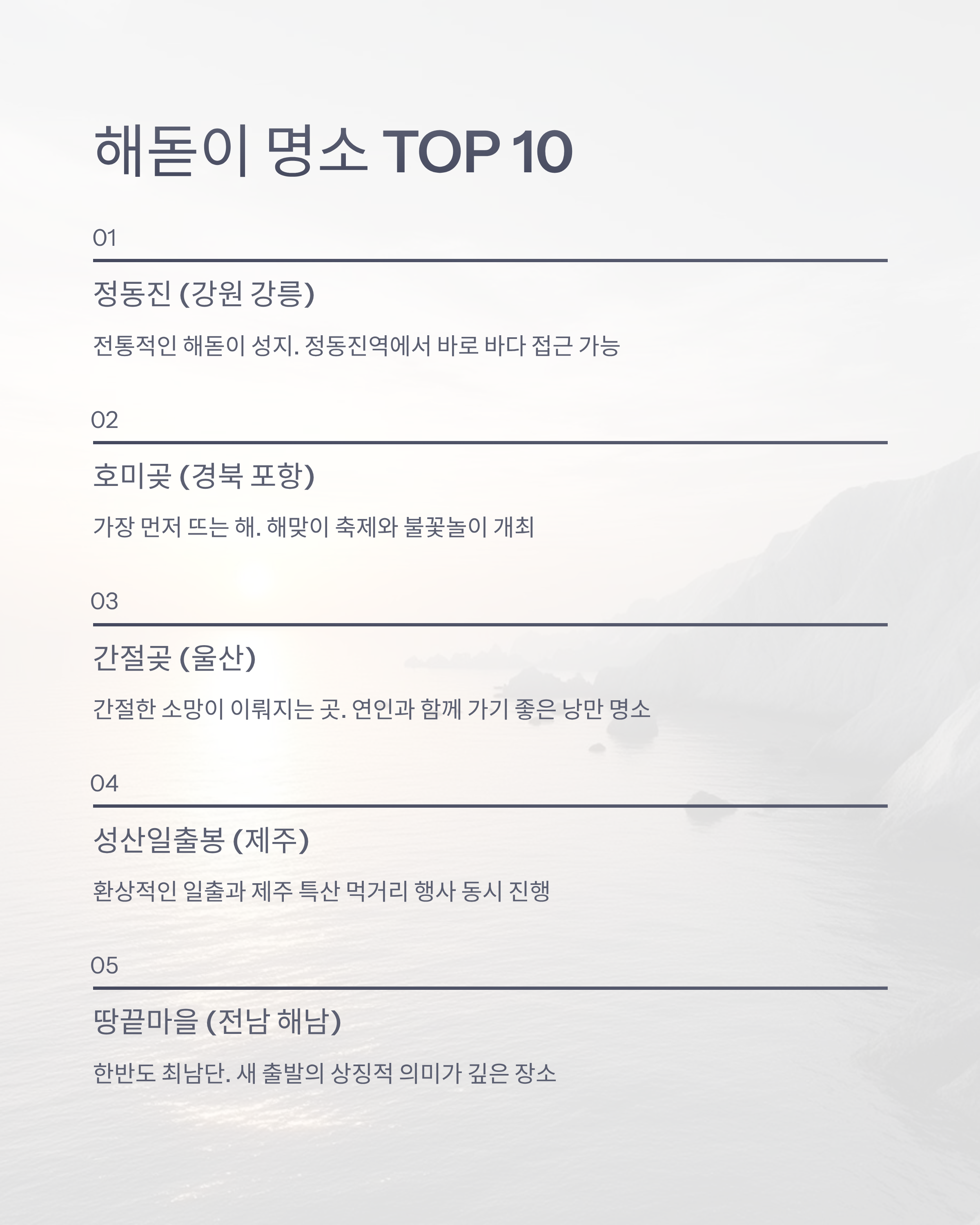 2026년 해돋이 시간 정보와 전국 해돋이 명소 BEST 10을 정리했습니다.