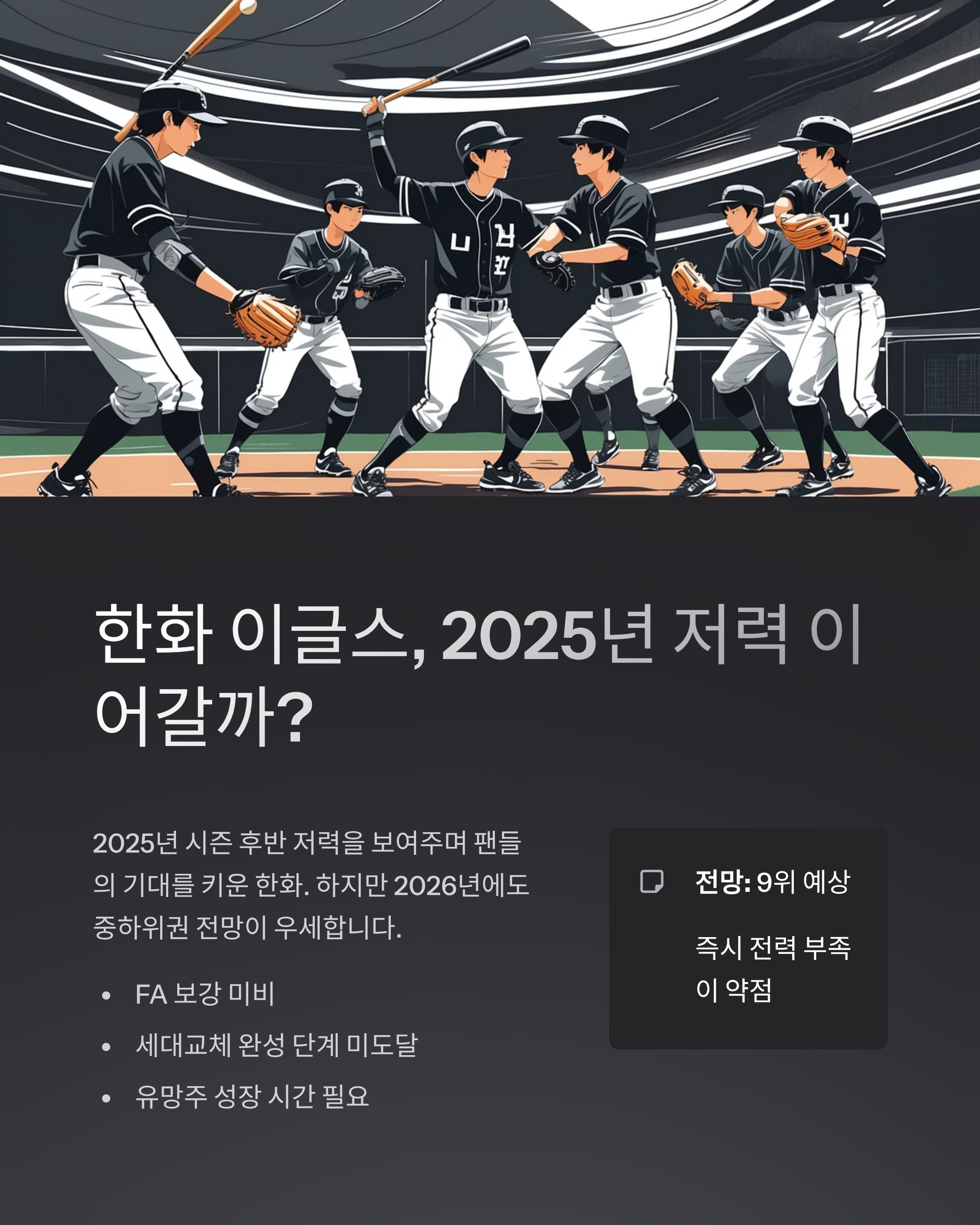 2025년 시즌 후반 저력을 보여주며 팬들의 기대를 키운 한화.