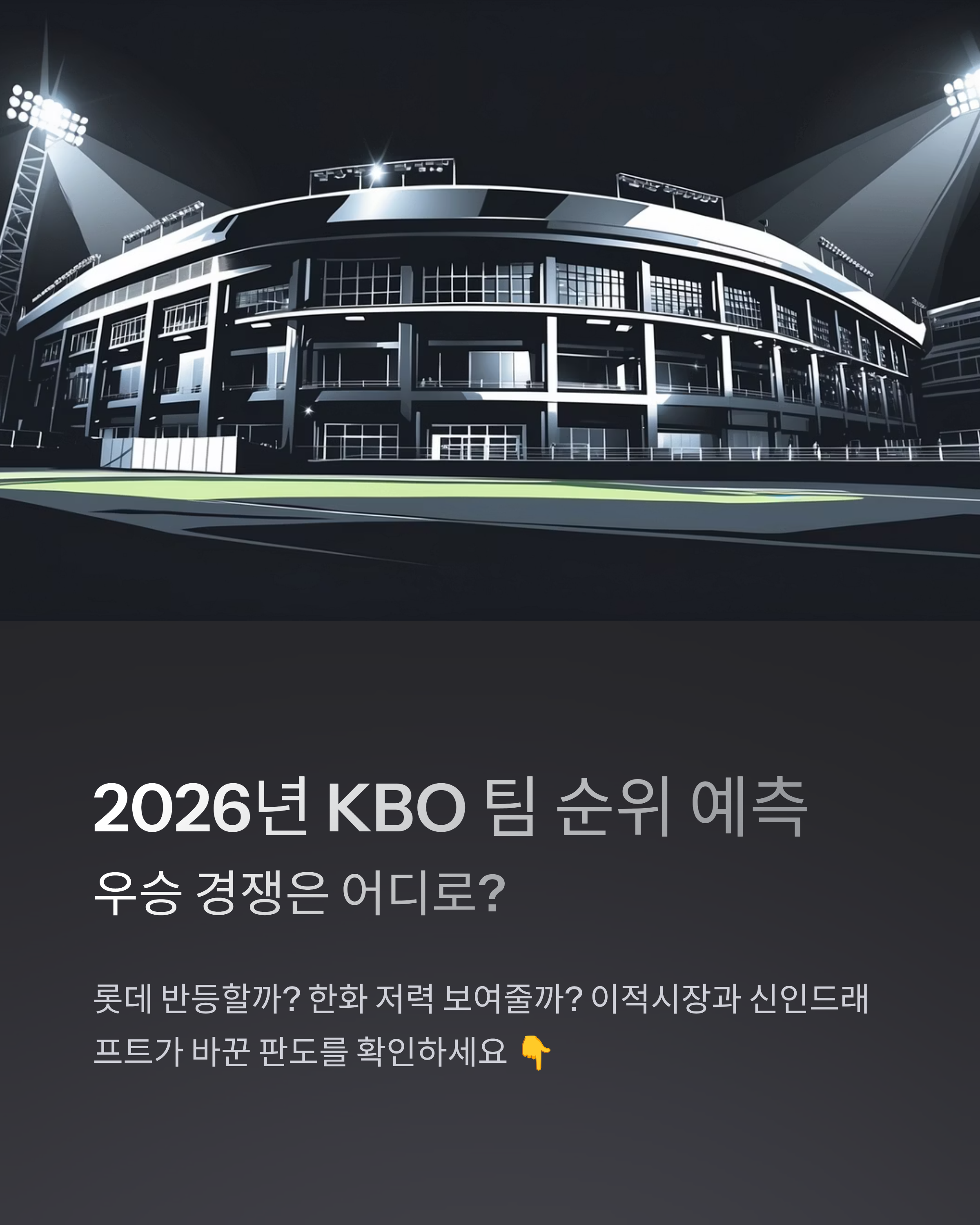 이번 글에서는 KBO 리그의 주요 팀 전력 변화와 함께 2026 시즌 순위 예측, 그리고 변수로 작용할 요소들을 정리해보겠습니다.