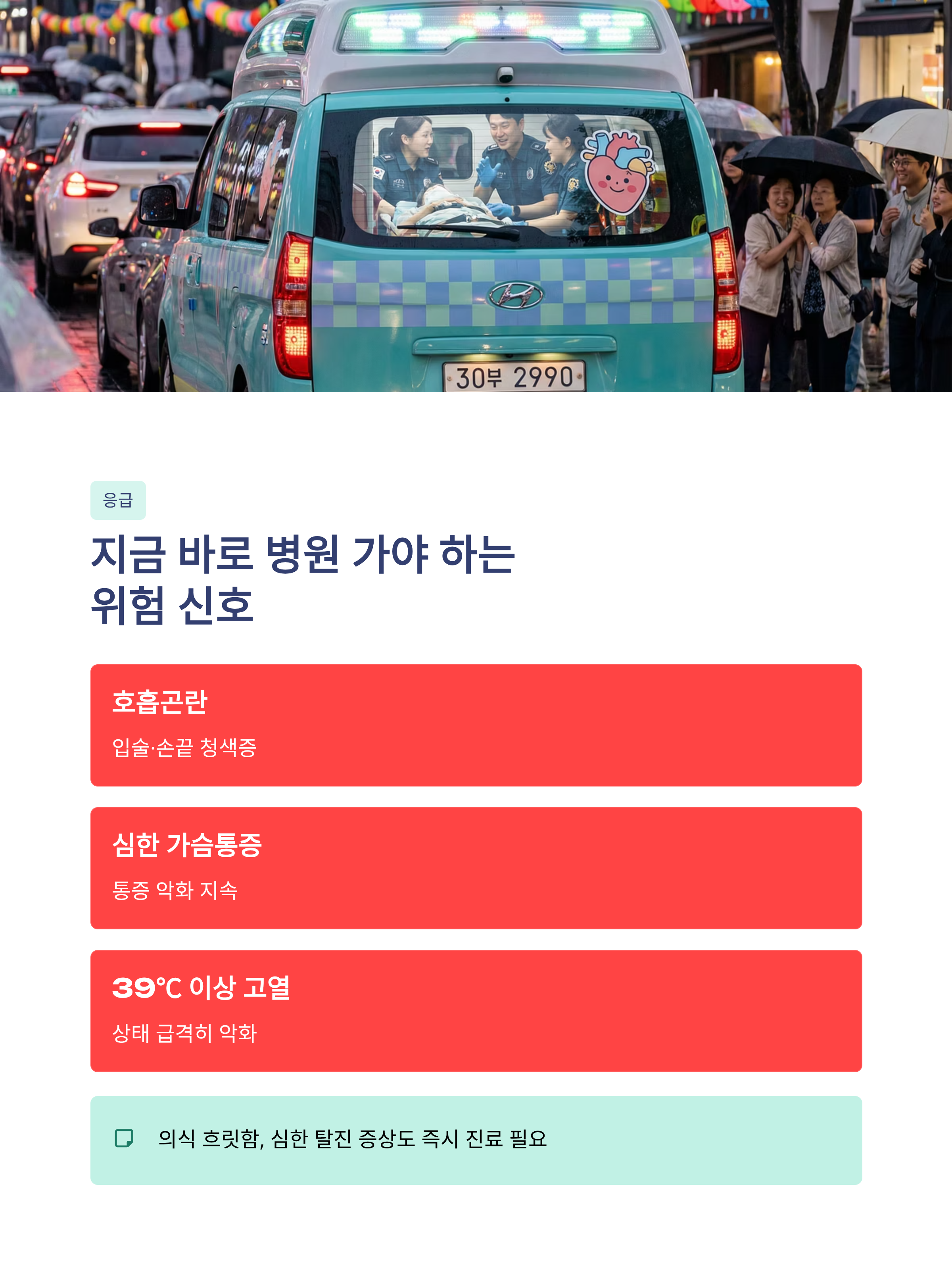 5) 지금 병원(또는 응급)으로 가야 하는 위험 신호