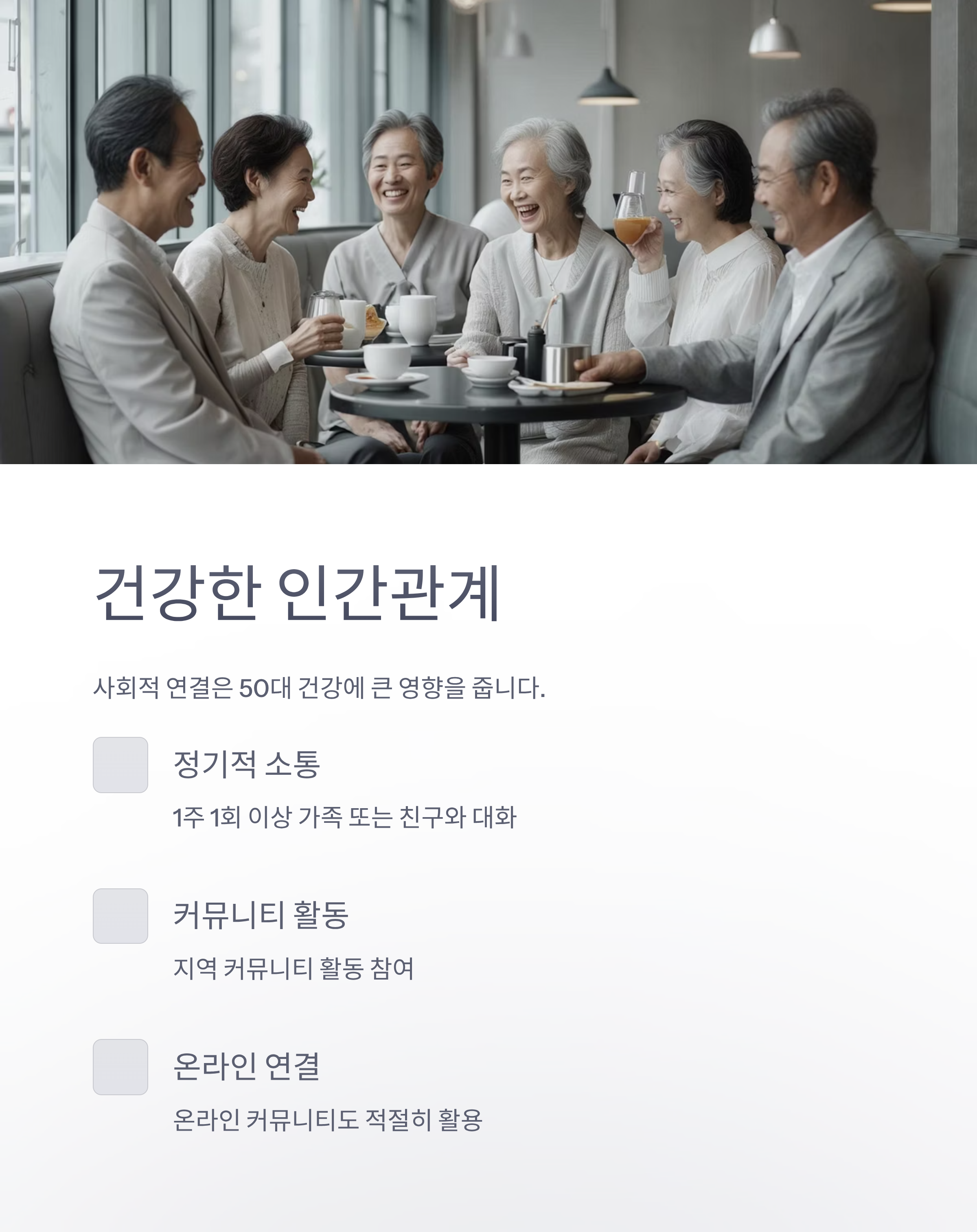 사회적 연결은 50대 건강에 큰 영향을 줍니다.