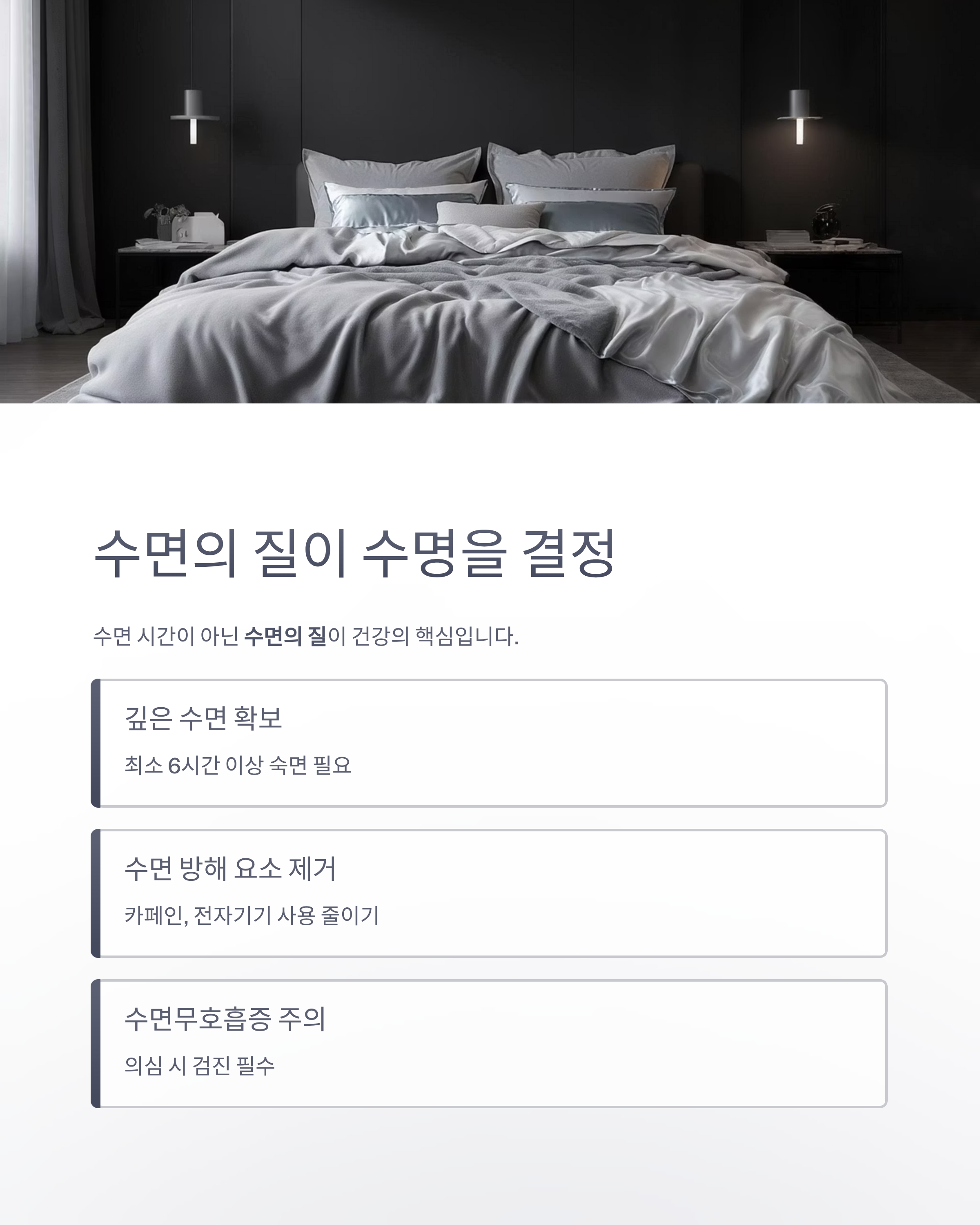 수면 시간이 아닌 수면의 질이 건강의 핵심입니다.