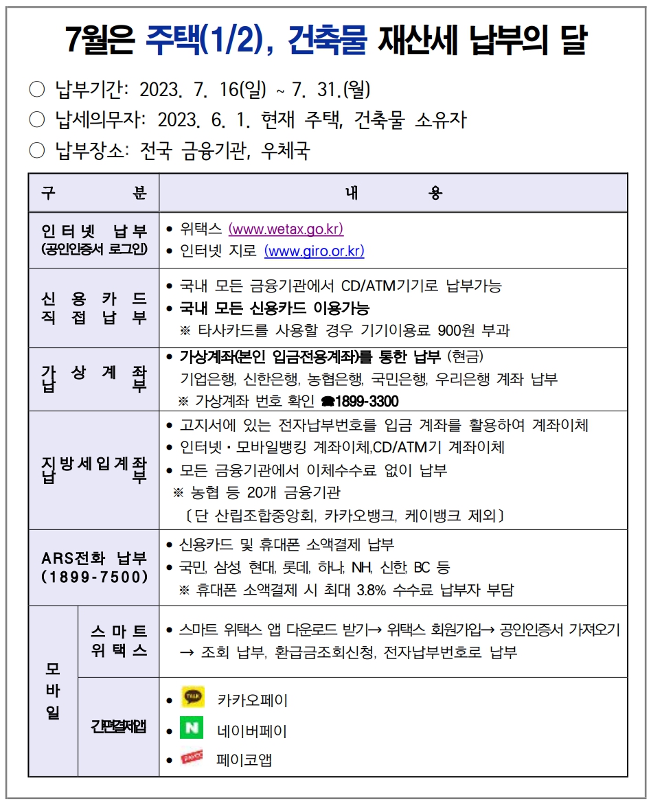 .○ 납부기간 : 2023. 7. 16. ∼ 7. 31.