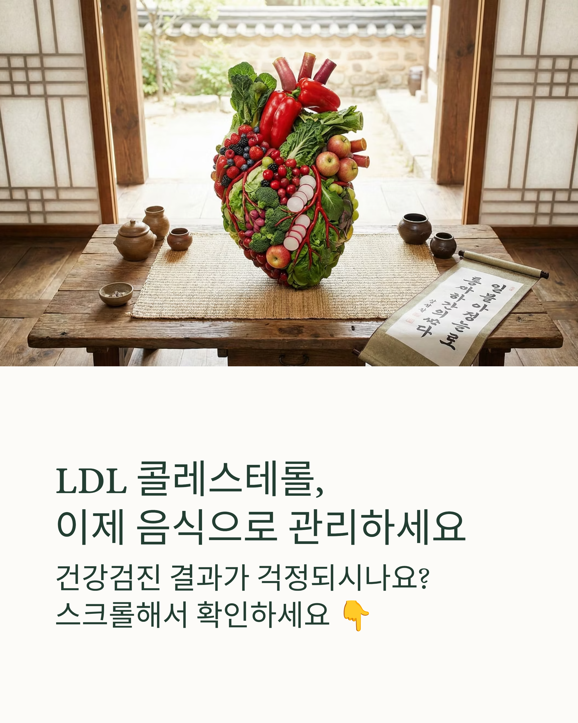 메타 설명: LDL(나쁜 콜레스테롤)의 의미와 혈관에 미치는 영향을 쉽게 설명하고, 수용성 식이섬유·불포화지방·피토스테롤 중심으로 LDL 관리에 도움이 되는 음식 TOP 10과 실천 팁을 한눈에 정리했습니다.